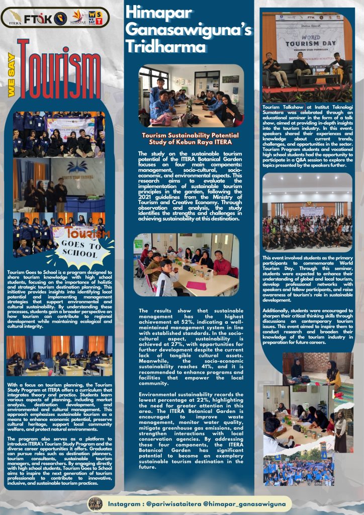 25 Juni 2025, Lembah Suhita menjadi lokasi pelaksanaan Focus Group Discussion (FGD) bertema “Pengembangan Lembah Suhita dalam Pengelolaan Kawasan Pasca Tambang,” sebagai kelanjutan kerjasama antara Program Studi Pariwisata ITERA dan Lembah Suhita. FGD ini bertujuan menghasilkan gagasan konkrit untuk pengembangan eduwisata berbasis lingkungan, menemukan strategi kolaboratif untuk integrasi destinasi dan promosi bersama, serta menyusun langkah […]