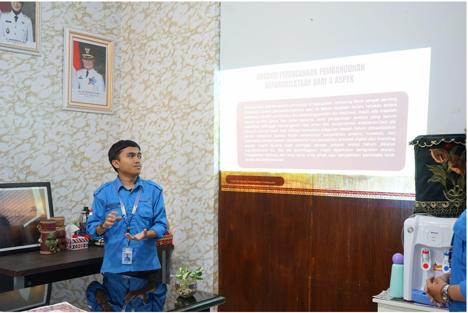 Kegiatan Studio Perencanaan Pariwisata ini tidak hanya memberikan pengalaman akademik berbasis praktik bagi mahasiswa, tetapi juga menjadi bentuk kontribusi nyata dunia pendidikan dalam mendukung pengembangan pariwisata daerah. Melalui kolaborasi antara kampus, pemerintah, dan masyarakat, diharapkan hasil kegiatan ini dapat menjadi referensi strategis dalam memajukan pariwisata Kabupaten Lampung Barat agar semakin dikenal luas.