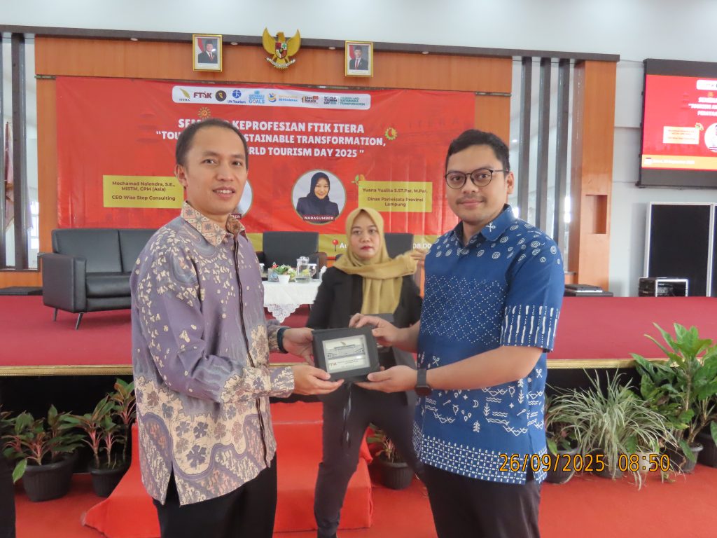 Sebagai Institusi pendidikan yang memiliki fokus pada pengembangan infrastruktur dan perencanaan wilayah, Institut Teknologi Sumatera (ITERA) turut berpartisipasi dalam perayaan WTD 2025 melalui Seminar Keprofesian Program Studi Pariwisata. Acara ini menjadi wujud nyata kontribusi akademik dalam membangun kesadaran, sekaligus memperkuat sinergi antara dunia pendidikan, masyarakat, dan praktisi pariwisata.