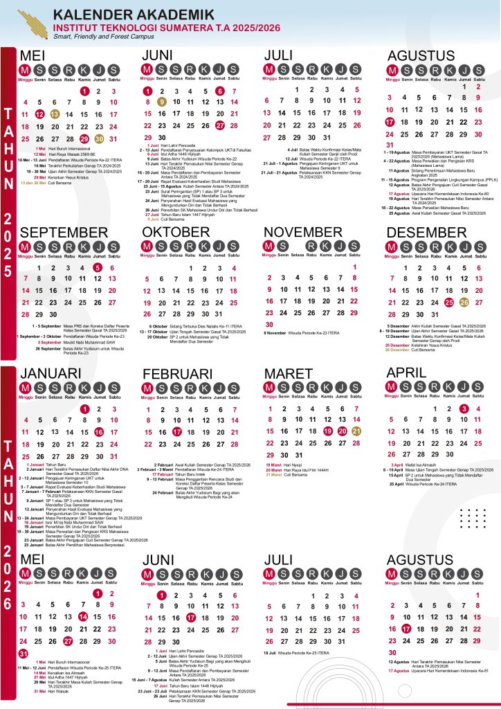 Kalender Akademik Berikut Kalender Akademik Institut Teknologi Sumatera Semester Ganjil/Genap 2025-2026